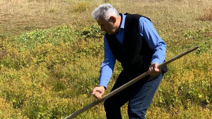 Paylaşımına, "Adeta cennetten bir köşe" notunu düşen Binali Yıldırım'ın, fotoğraflarda tırpanla ot biçtiği görüldü.