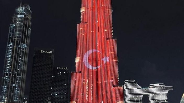 Türkiye'nin Abu Dabi Büyükelçisi Tugay Tunçer, BAE'nin dünyaca ünlü gökdelen projesi Burj Khalifa'nin Türk bayrağıyla aydınlatılmış halinin videosunu sosyal medya hesabından paylaştı.