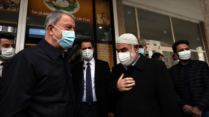 Vali Ali Hamza Pehlivan’dan çalışmalara ilişkin bilgi alan Akar, daha sonra komutanlarla birlikte kent merkezinde gezerek esnafla sohbet etti. Ana caddedeki iş yerlerine giren, çalışanlarla tek tek konuşan Akar ve TSK komuta kademesine esnaf hem sağlanan güven ortamından hem de ziyaretten duydukları memnuniyeti ifade etti. Akar ve komutanlar, daha sonra bir çay ocağında çok sayıda vatandaşla bir araya geldi.