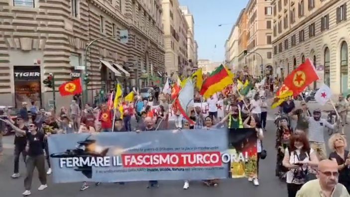 Türk Silahlı Kuvvetleri, Suriye'de operasyona hazırlanırken terör örgütü yandaşları da boş durmuyor. Örgüt sempatizanları Avrupa'nın göbeğinde Roma'da yürüyüş gerçekleştirdi.