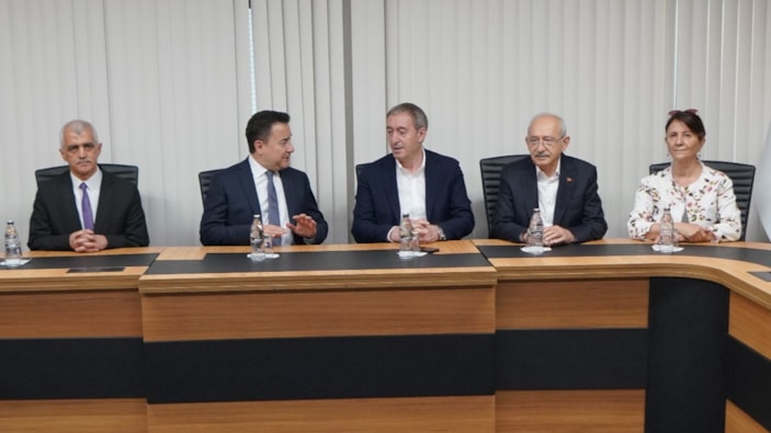 Bu kapsamda eski CHP Genel Başkanı Kemal Kılıçdaroğlu ve DEVA Partisi Genel Başkanı Ali Babacan, DEM Parti Genel Merkezi'ndeydi.