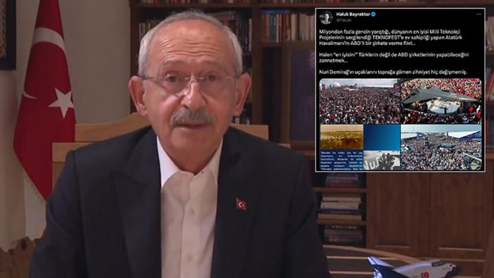 Haluk Bayraktar'ın açıklamalarına Twitter'dan yanıt veren Kemal Kılıçdaroğlu, "Bu kadar siyasallaşmayın Sevgili Haluk Bey. Siz ailece bizim için çok değerlisiniz. Bir partinin seçim propagandası olmak size yakışmaz. İstikbalde başarılı bütün Türk girişimcilerimize yer var. Uzay hepinize yetecek kadar geniş" ifadelerini kullandı.