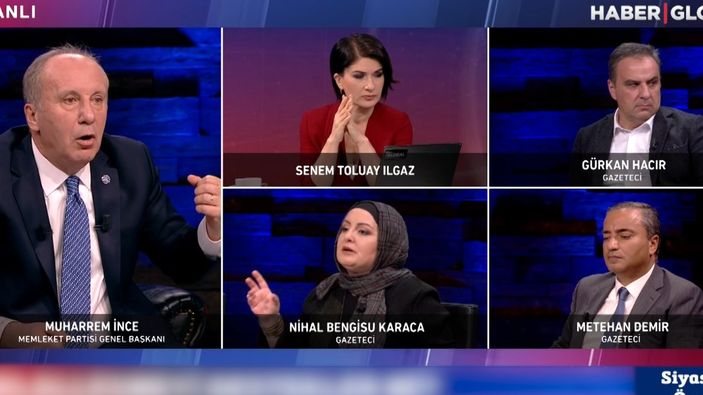 Memleket Partisi Genel Başkanı Muharrem İnce, Haber Global'de Sanem Toluay Ilgaz'ın moderatörlüğünde yayınlanan Siyaset Özel'de gazetecilerin sorularını yanıtladı.