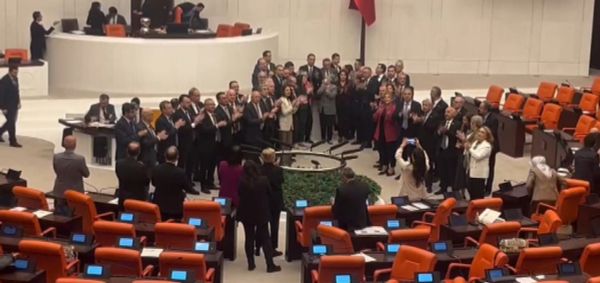 CHP'li vekiller, Ekrem İmamoğlu'nun diplomasının iptal edilmesi kararını TBMM sıralarına vurarak protesto etti.
