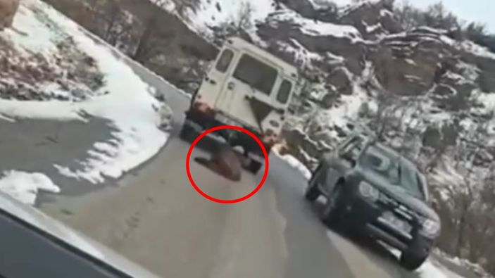 Tunceli- Erzincan yolunda, Pülümür Vadisi'nde ölü yaban domuzu, cipin arkasına zincirle bağlanarak kilometrelerce sürüklendi.