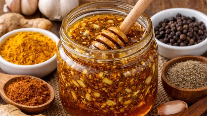 Bu 5 baharatı, 1 su bardağı balın içine dökün ve karıştırın. Yaklaşık 1 saat beklettikten sonra sabah akşam birer kaşık tüketin.