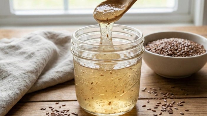 Bir yemek kaşığı keten tohumunu suda yaklaşık 15 dakika bekleterek jel kıvamına gelmesini sağlayın.