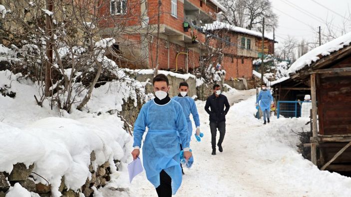Ekipler, zorlu yolculukla ulaştıkları evinde Kıbrıs Gazisi Mehmet Karaoğlu'na, 3'üncü doz koronavirüs aşısını yaptı. Gazi Karaoğlu, "Böyle devlet başka nerede bulunur? Allah hepsine sağlık sıhhat versin. Bizi hiç yalnız bırakmadılar. 2 doz aşımı oldum, 3'üncü dozu da şimdi olacağım. Gurur duyuyorum." dedi.