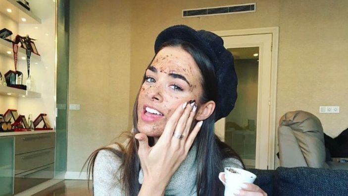 Türk kahvesi maskesini kullanan Bensu Soral, bir Youtube programına katılmış ve yayın sırasında bu maskeyi denemişti.