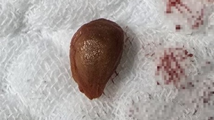 Bronşun içini açtığımızda bir çekirdekle karşılaştık. Çekirdeğin üzeri doku benzeri bir yapıyla kaplanmıştı. Bronkoskopide tümör sanılmasının nedeni de buydu; çekirdek, tümöre benzer ve vücut dokusuna benzeyen bir görünüm kazanmıştı.