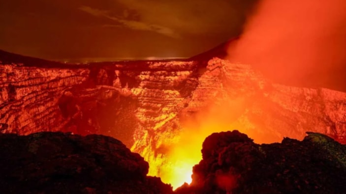 Virunga Dağları’nda bulunan Nyiragongo Yanardağı, dünyanın en büyük lav göllerinden birine ev sahipliği yapıyor.