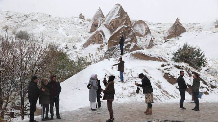 Yüksel, karın turist kafilesi için büyük bir sürpriz olduğunu belirterek, “Kapadokya yazın ayrı, kar altında ayrı güzel. Bugün adeta doğaüstü bir manzara oluştu. Herkesi Kapadokya’ya davet ediyoruz.” dedi.