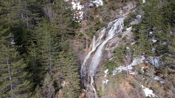 Kar şelalelerinin doğaya ayrı bir renk kattığını vurgulayan Keleş, dron çekimlerinde bölgede başka küçük şelalelerin de görülebildiğini ifade ederek, “Yaklaşık 12 metrelik bir yükseklikten dökülen suyun, yukarı kesimlerde de benzer oluşumlar meydana getirdiğini görüyoruz.” diye konuştu.
