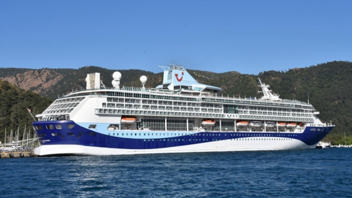 Bu gemilerden biri olan Malta bayraklı "Marella Discovery" adlı kruvaziyer, Akdeniz turu kapsamında Muğla'nın Marmaris ilçesine geldi.