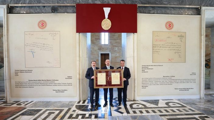 Türkiye Büyük Millet Meclisi'nde gerçekleştirilen törenle, "İstiklal Madalyası Beratı" Samsun'a teslim edildi.