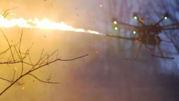 Alev makinesine sahip drone'un marifetlerini görmek için aşağıdaki videoya göz atabilirsiniz.