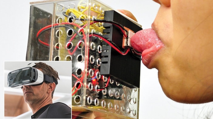 Hong Kong Şehir Üniversitesi'ndeki bilim insanları, izleyicilerin yemek programlarındaki yiyeceklerin tadına bakmasını sağlayacak yalanabilir bir sanal gerçeklik (VR) cihazı geliştirdi.