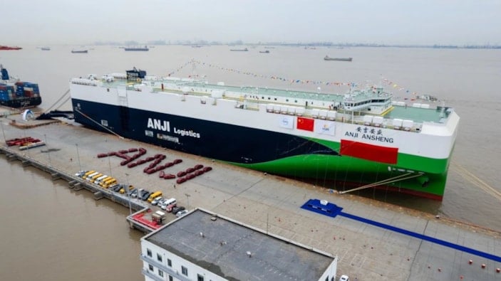 Çin'in otomotiv devi SAIC Motor için inşa edilen ve 9 bin 500 araç taşıma kapasitesiyle "dünyanın en büyük otomobil gemisi" unvanını alan Anji Ansheng, Şanghay'dan Avrupa'ya doğru ilk seferine başladı.