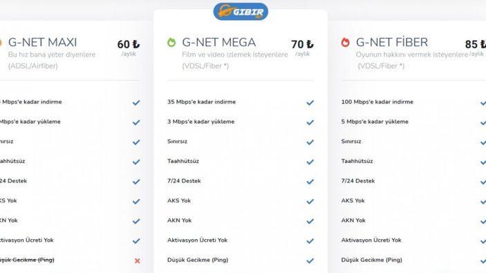 100 Mbps internet ve sınırsız internet paketleriyle, üyelerine özel indirimli kampanyalarla ucuz kullanım alanı oluşturmuştur. Hız ve kapasite açısından sorunsuz ve kesintisiz bir internet kullanımı için GIBIRNET ile iletişime geçerek evinizde ve iş yerinizde hızlı internetle tanışabilirsiniz.