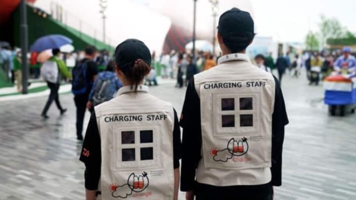 Japonya'nın Osaka kentinde düzenlenen Expo 2025'te personel, kavurucu yaz sıcaklarıyla mücadele etmek için ultra ince ve esnek perovskit panellerle donatılmış yeni güneş enerjili yelekler kullanıyor.