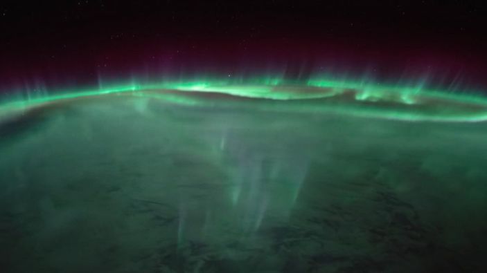 Uzay istasyonu tarafından kayıt edilen görüntülerde, kutup ışıkların eşiz güzelliği gözler önüne serildi.