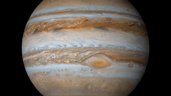 Güneş'e olan uzaklığı bakımından beşinci sırada yer alan ve Güneş sisteminin en büyük gezegeni olan Jüpiter, büyük ölçüde hidrojen ve helyum gazlarından oluşuyor. Bilim insanları ise bu gezegeni yakından incelemeye devam ediyor.