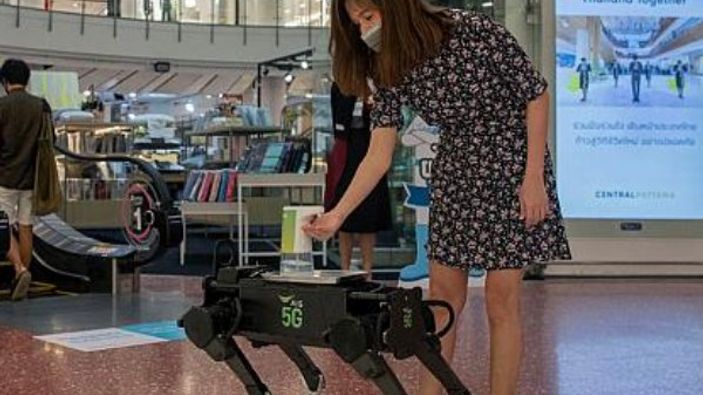 Tayland’ın başkenti Bangkok'taki Central World alışveriş merkezinde, robotlar koronavirüs denetimi yapıyor.