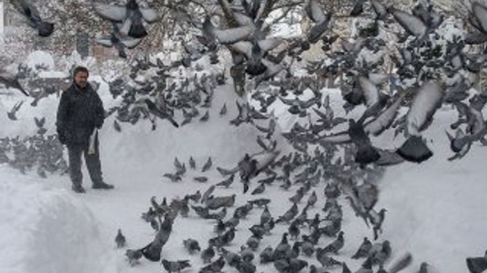 Van'da çay ocağı işleten Mevlüt İzgi, olumsuz hava koşulları nedeniyle yiyecek bulmakta zorlanan kuşları, 30 yıldır her gün çocukları gibi besliyor.