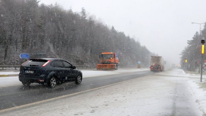 Kar yağışının başlamasıyla D-100 karayolunun Abant Kavşağı, Bakacak, Karanlıkdere ve Elmalık mevkileri beyaz örtüyle kaplandı.