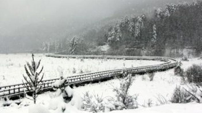 Bolu'nun doğal güzellikleriyle ünlü Abant Tabiat Parkı'nı etkili olan kar yağışı beyaza bürüdü.