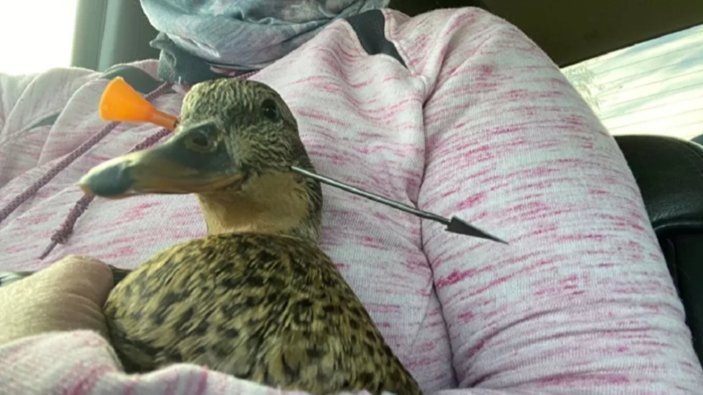 ABD'de başına dart saplanan ördek kurtarıldı VİDEO