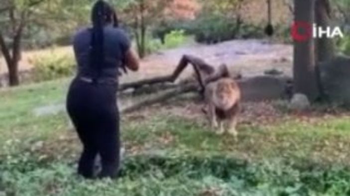 Ziyaretçi, güvenlik bariyerini ihlal edip aslanın bulunduğu alana geçti.