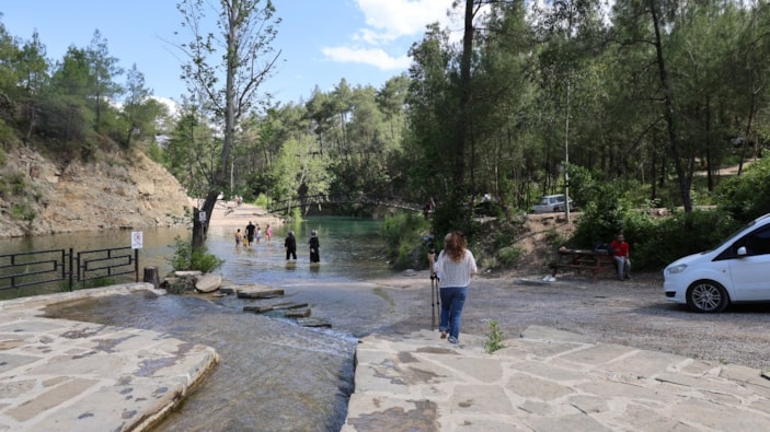 Adana sıcağından kaçan Yedigöze Tabiat Parkı'nda serinliyor