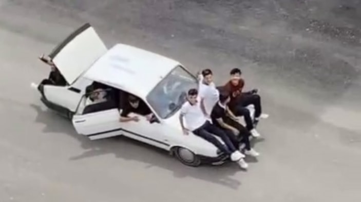 Adana'nın Merkez Yüreğir ilçesi Özgür Mahallesi'nin ara sokaklarında çekilen görüntülerde, bir otomobilin bagajında ve kaputunda çok sayıda çocuğun yolculuk yapması dikkat çekti.