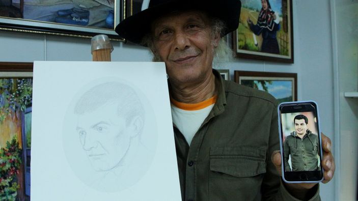 Resim öğretmenliğinden emekli olan ressam İbrahim Şendil, hiç görmediği insanlarla, sadece telefonda sesini duyarak karakalem portresi oluşturuyor.