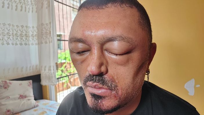 Murat Gözde, yaşadıklarını anlatarak, "Berberin tavsiyesi üzerine bu ürünü aldım. Önce dirseğime sürdüm 48 saat sonra komple saçıma uyguladım. Sonra yüzüm, gözüm şişti. Kafamda yaralar çıktı.