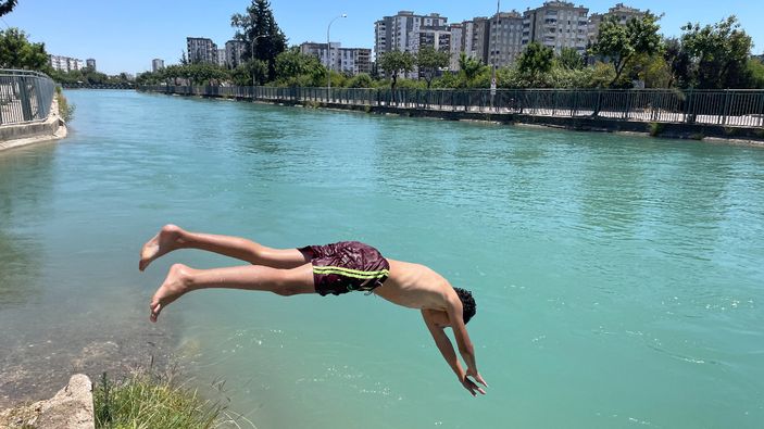 Adana'da termometreler 44 dereceyi gösterirken, sıcaktan bunalan gençler, tehlikeleri göze alarak sulama kanallarında yüzerek serinliyor.