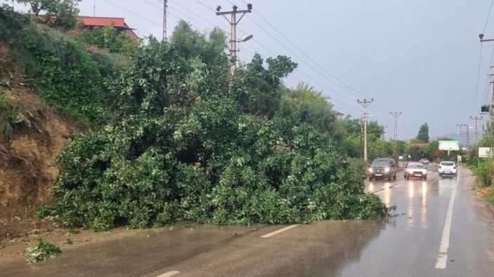 Kozan ilçesinde etkili olan aşırı yağış ve fırtına nedeniyle ağaç yola devrildi. Trafikte sürücüler zor anlar yaşarken, ekipler ağacı yoldan kaldırma çalışmalarını başlattı.