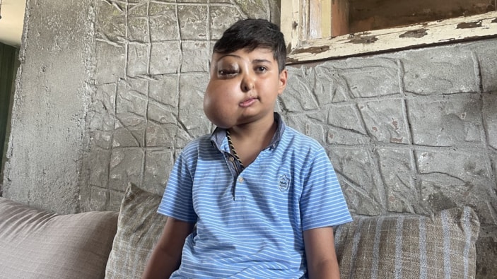 Adana'da yüzünde kitle olan çocuk tedavi olmak istiyor