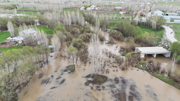 Ağrı'nın Patnos ilçesinde etkili olan yağış sonrası Badişan Deresi taştı, bazı evler ile araziler su altında kaldı.