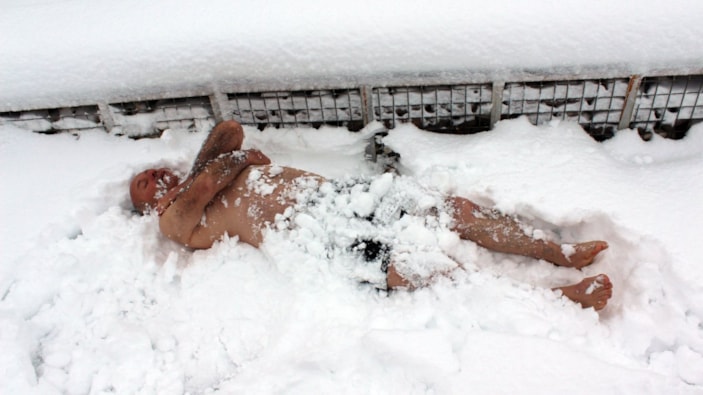 Bir turizm firmasında çalışan Sami Yüksel (65) ise parkta kar banyosu yaptı.