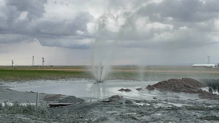 Aksaray'da tarlada sondaj kuyusundan karbondioksit gazı çıktı: Su fışkırdı