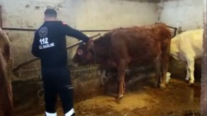 Koronavirüs testi pozitif olan yaşlı kadın, karantinada ahırdaki hayvanlarını besleyemedi. Kadının evine gelen sağlık ekipleri hayvanların aç olduğunu öğrenince ahıra girerek, inekleri besledi.
