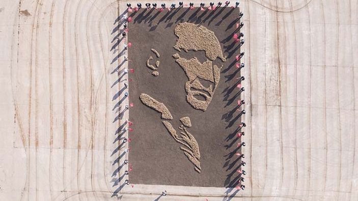 Ankara'da fabrika işçileri 8 ton şeker pancarıyla Atatürk silüeti oluşturdu