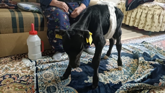 Ardından buzağıyı aldık ve eve getirdik. Saç kurutma makinesiyle buzağıyı kuruttuk, emzirdik. İlk başta kalkamadı, sonra kalktı. Şimdi geziyor. Evde sütünü içiriyorum, evde bakıyoruz ve durumu iyi. Eksik doğmuştu. Veterinere danıştık, veteriner ‘Bu ölür, bizim yapacağımız bir şey yok' dedi. Ama ben eve getirdim, ilacını vurduk, iğnesini yaptık. Sobanın başında uğraştık. Şimdi canlı duruyor” dedi.