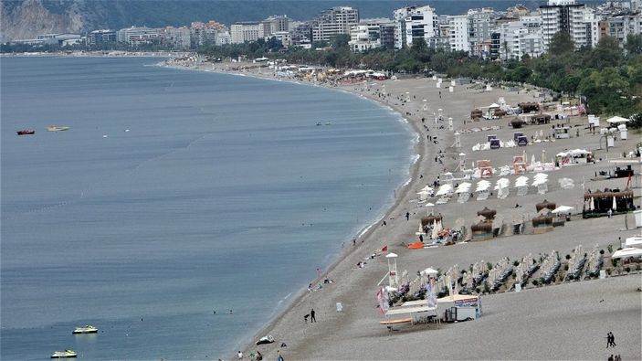 Uyarıların ardından dünyaca ünlü Konyaaltı sahili sessizliğe büründü.