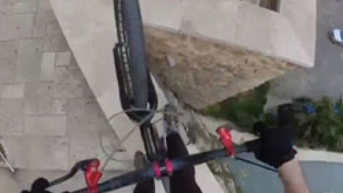 Gençlerden birisi, bindiği bisikleti surların kenarında zaman zaman tek teker üzerinde kullanarak adeta ölüme meydan okudu. Genç bisikletçi bununla da kalmayarak bir surun üzerinden başka bir sura atladı.
