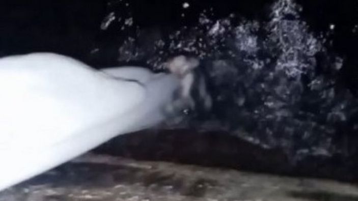 Suya düşen kedi, kayalıklardan tırmanmaya çalışsa da başarılı olamadı. Denizden kedi sesinin geldiğin duyan bir otelin güvenlik personeli, kayalık alana geldiğinde yavru kediyi fark etti. Plajdan bez parçası bulup denize sarkıtan personel, bir süre yavru kedinin tırmanmasını bekledi. Kurtarma çabalarını anne kedi de izlerken, beze tırmanan yavru kedi karaya çıkartıldı.