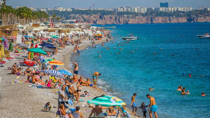 Hava sıcaklığının 24 derece olduğu Antalya'da sahiller doldu. Antalyalılar ve turistler ekim güneşinin keyfini çıkardı.