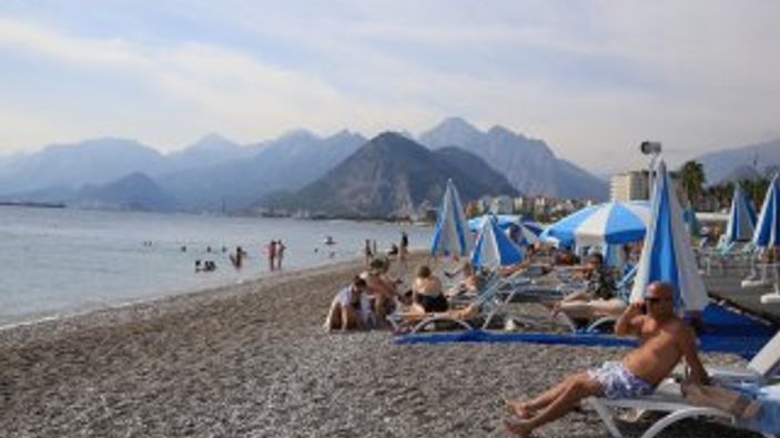 Hava sıcaklıklarının 4-5 derece mevsim normallerinin üzerinde seyrettiği Antalya'da, güneşli ve ılık havayı fırsat bilenler, plajlara gitti.